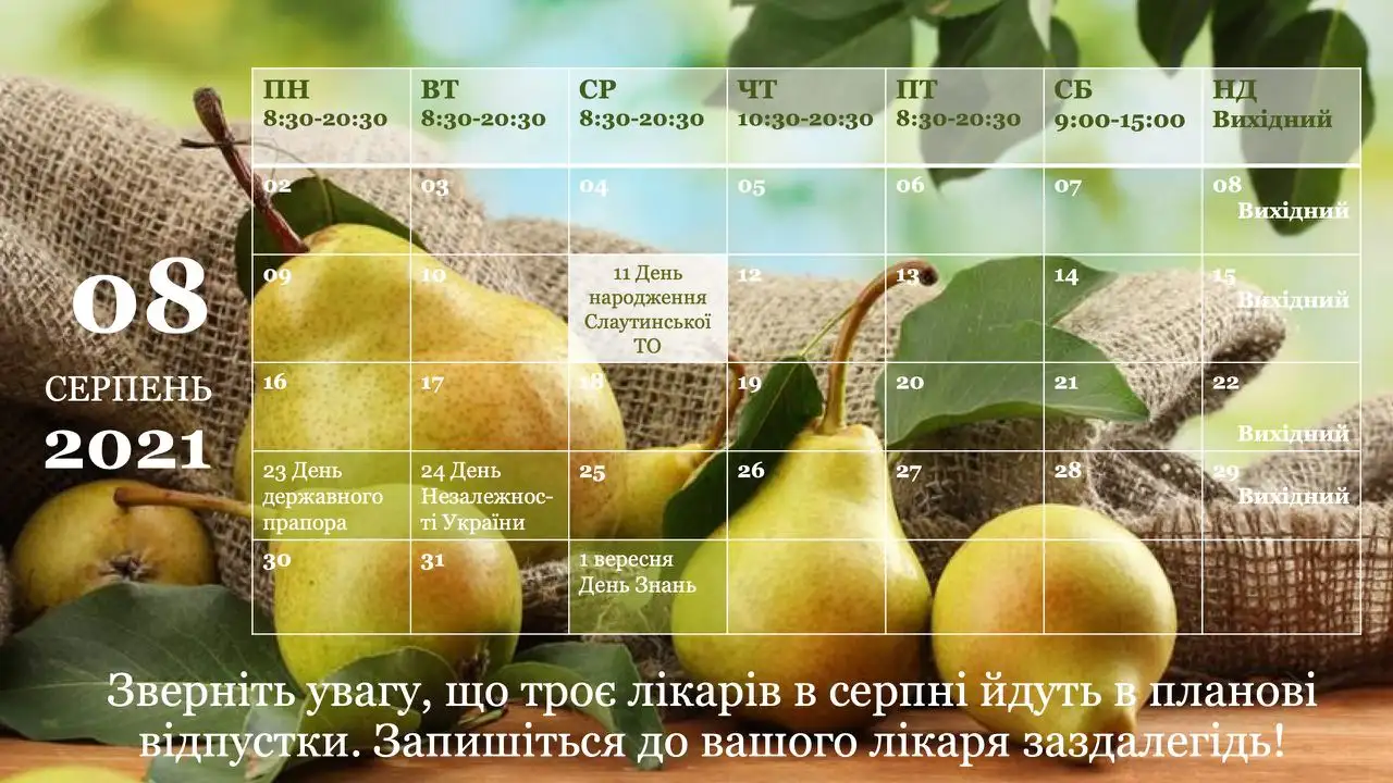 ДЕТАЛЬНИЙ ГРАФІК РОБОТИ НА СЕРПЕНЬ