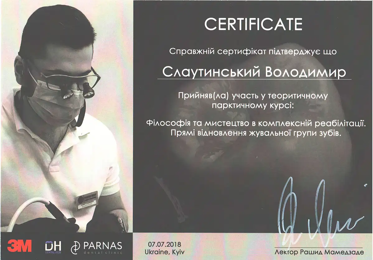 Имеет звание Магистра Европейского Медицинского университета «Виктора Бейбиса», потомственный стоматолог.